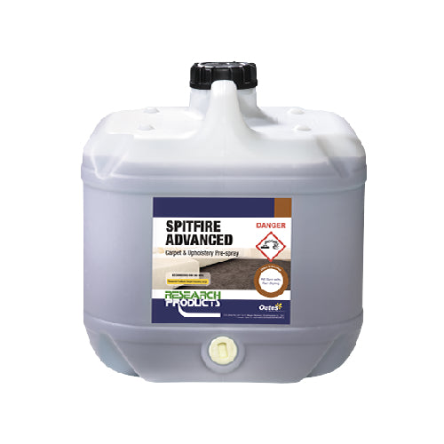 As a pre-spray it is suitable for use on regular and new low-profile style carpets and upholstery to remove greasy, stubborn stains. Suitable for wool, wool blend and olefin and satin treated nylon fibre carpets. SPITFIRE ADVANCED rinses freely and allows more dirt and greasy soil to be removed leaving it fresh and brilliantly clean.